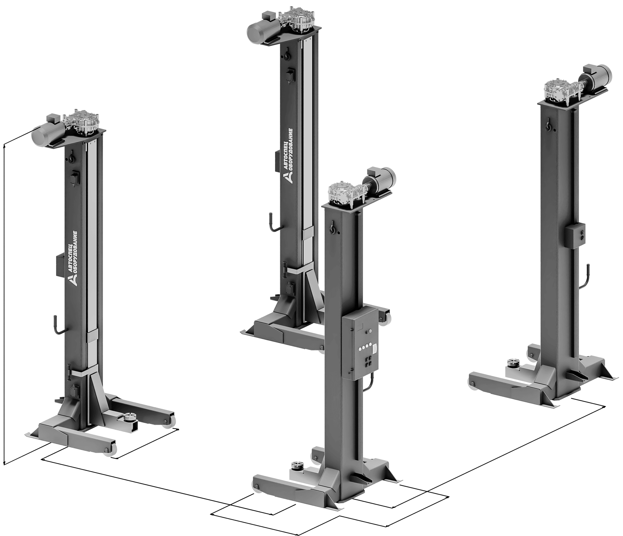 Подъем за поддомкратные площадки автобусов, троллейбусов, трамваев общей массой до 16 тонн. Подъемник имеет четыре стойки. Многоуровневая система безопасности. Рабочие гайки из полиамида повышенной износостойкости. Устанавливается на полу с допускаемым удельным давлением более 10 кг/см2.