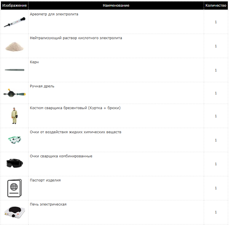 Комплект оборудования для ремонта аккумуляторных батарей бронетанковой техники 4akb-КА-4