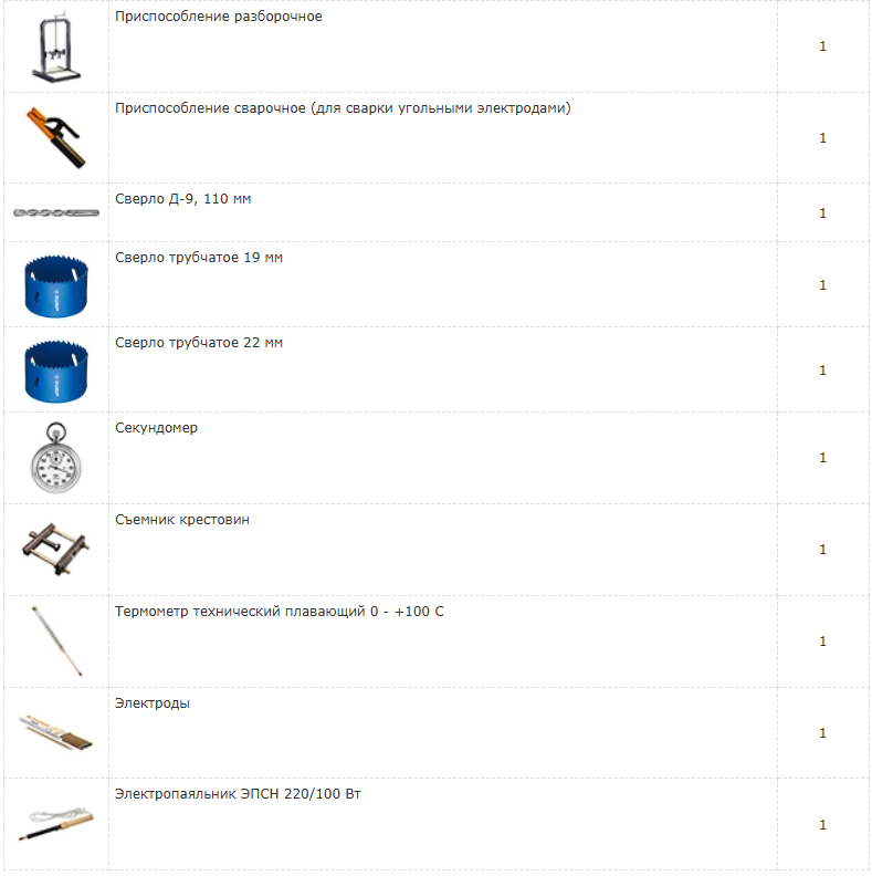 Крестовина-сьемник, керн, сверло D=3,5, коловорот, сверло трубчатое, приспособление разборочное применяются для операции разборки и сборки аккумуляторных батарей.