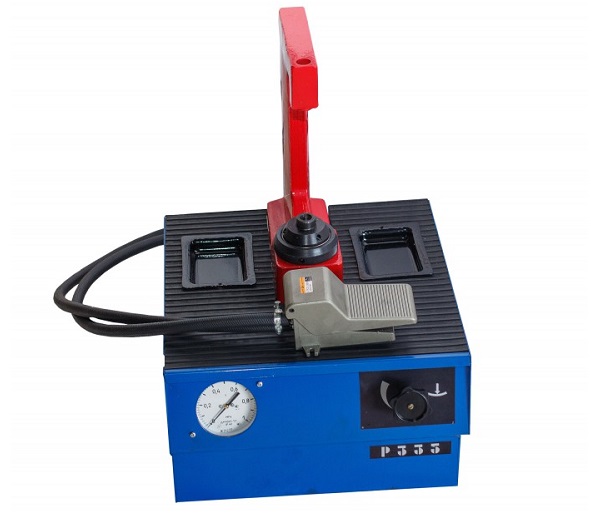 Пресс Р-335 пневматический, настольный, с резинотканевой мембраной рабочей камеры, предназначен для клепки фрикционных накладок тормозных колодок, дисков сцепления и для выпрессовки заклепок диаметром до 10 мм при замене изношенных накладок при ремонте автомобилей на станциях технического обслуживания и автотранспортных предприятиях.