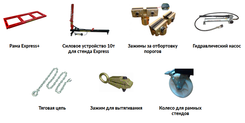 Благодаря сочетанию удлинённой жёсткой рамы, регулируемых зажимов порогов и силового устройства с изменяемым углом стрелы, рамный стапель EXPRESS+ является оптимальным выбором для автосервисов и кузовных участков, которые работают с широким спектром легковых автомобилей и регулярно сталкиваются с более сложными повреждениями, чем стандартные «лёгкие» страховые ремонты.