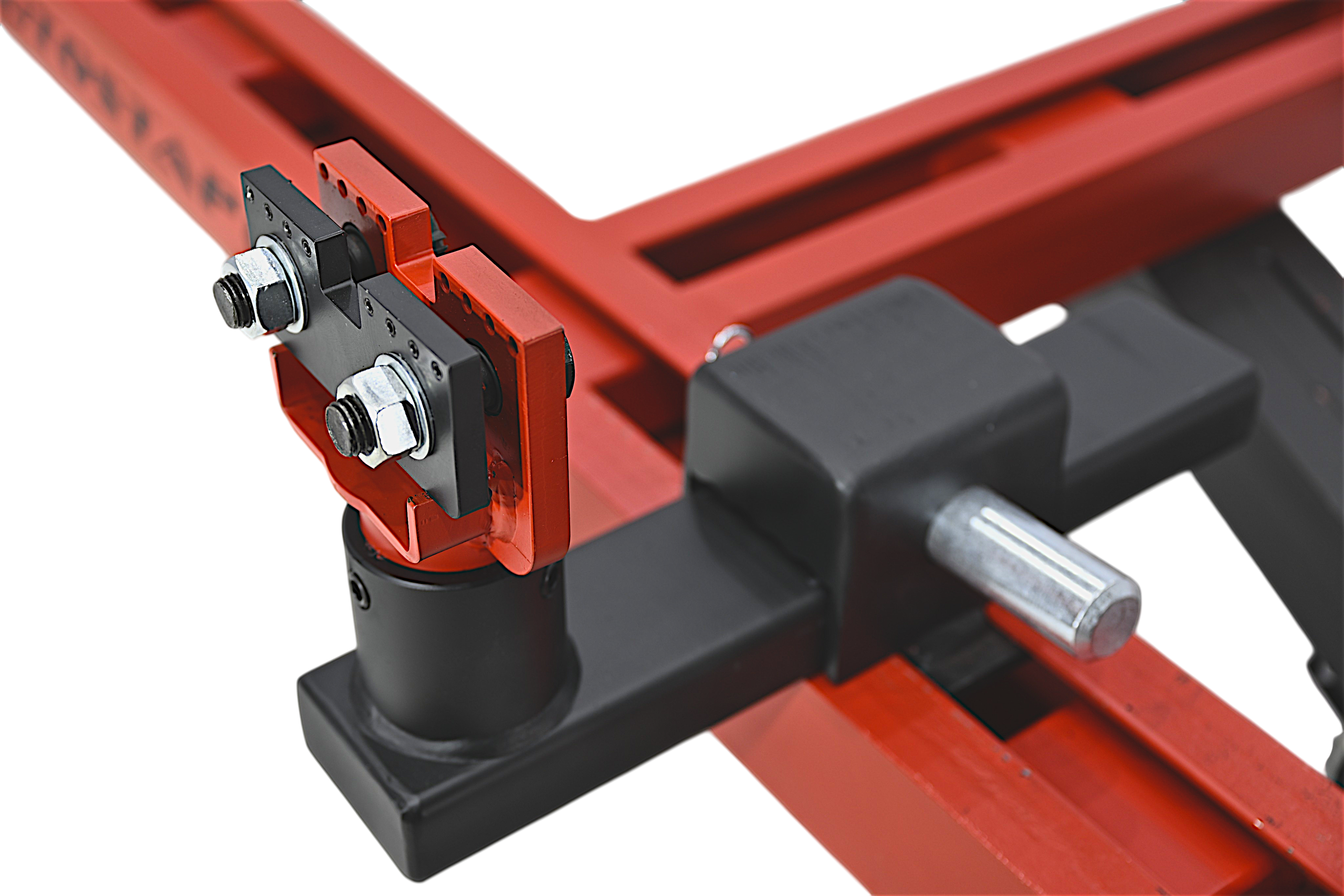 Силовое устройство EXPRESS+ рассчитано на работу с гидравликой усилием до 10 тонн и оснащено механизмом изменения угла наклона стрелы. Это позволяет задавать направление тяги вдоль, поперёк или под нужным углом к зоне повреждения без постоянной перестановки силовой стойки по периметру рамы, что сокращает подготовительное время и упрощает реализацию сложных схем вытяжки. Мобильный силовой модуль перемещается по цеху и фиксируется к раме клиновым замком в выбранной точке, обеспечивая удобный доступ к нужной зоне кузова даже в условиях ограниченного по длине и ширине бокса.