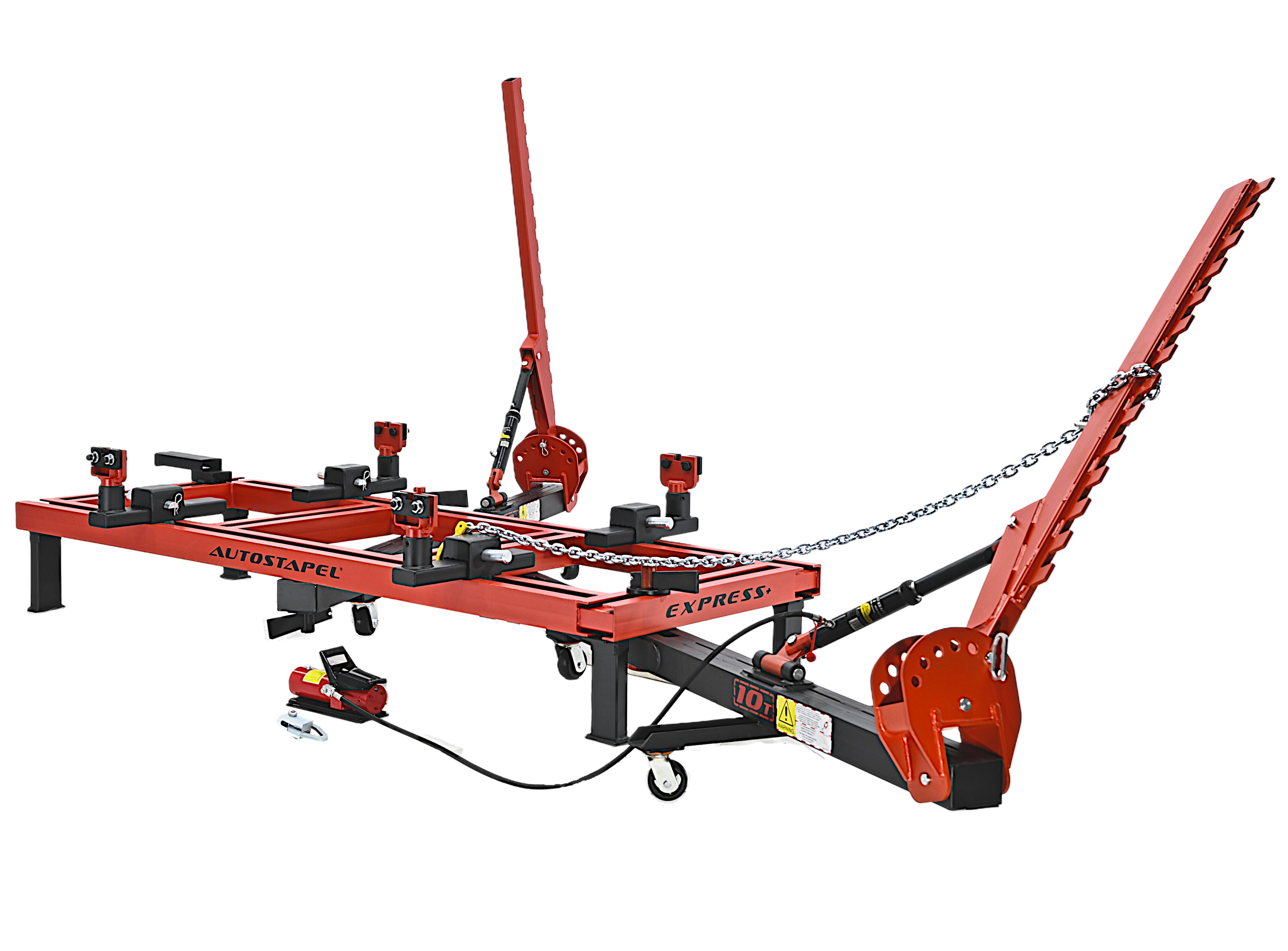 Благодаря сочетанию удлинённой жёсткой рамы, регулируемых зажимов порогов и силового устройства с изменяемым углом стрелы, рамный стапель EXPRESS+ является оптимальным выбором для автосервисов и кузовных участков, которые работают с широким спектром легковых автомобилей и регулярно сталкиваются с более сложными повреждениями, чем стандартные «лёгкие» страховые ремонты.